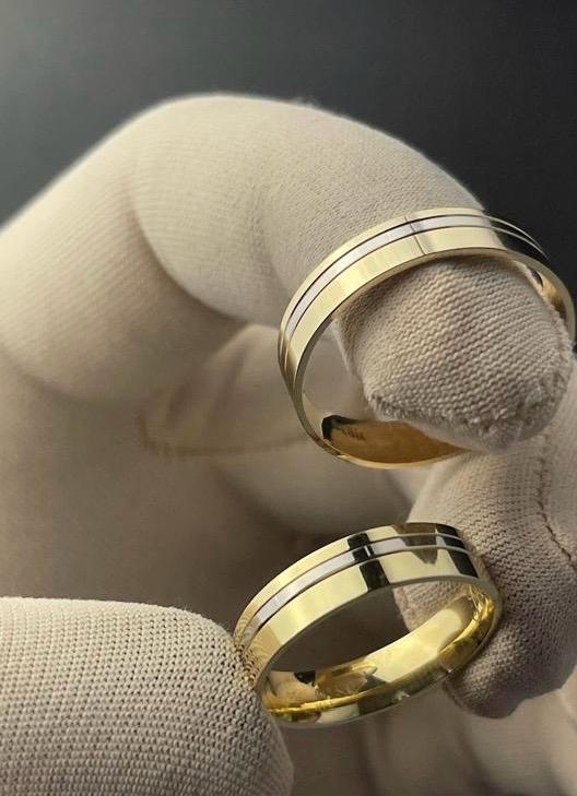 Alianças Elegância Moderna em Ouro 18K Bicolor – Filete em Ouro Branco