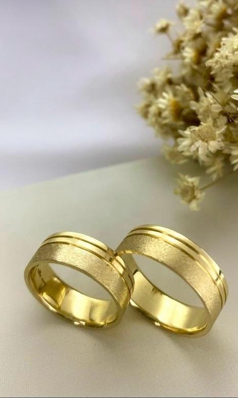 Alianças Luxo Diamantado Filetado em Ouro 18K – 15 a 20 Gramas