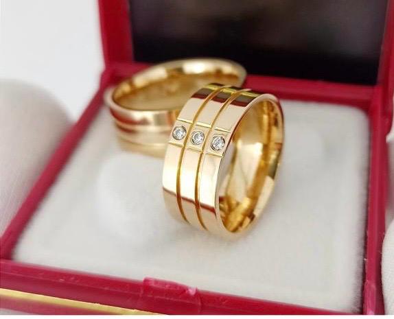 Detalhes: 2 Filetes (Frisos) e 3 Pedras Naturais/Brilhantes na aliança Feminina.