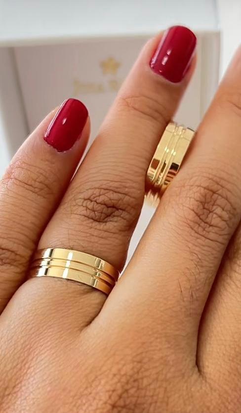 Alianças Três Faixas Modernas em Ouro 18K – 12 a 15 Gramas